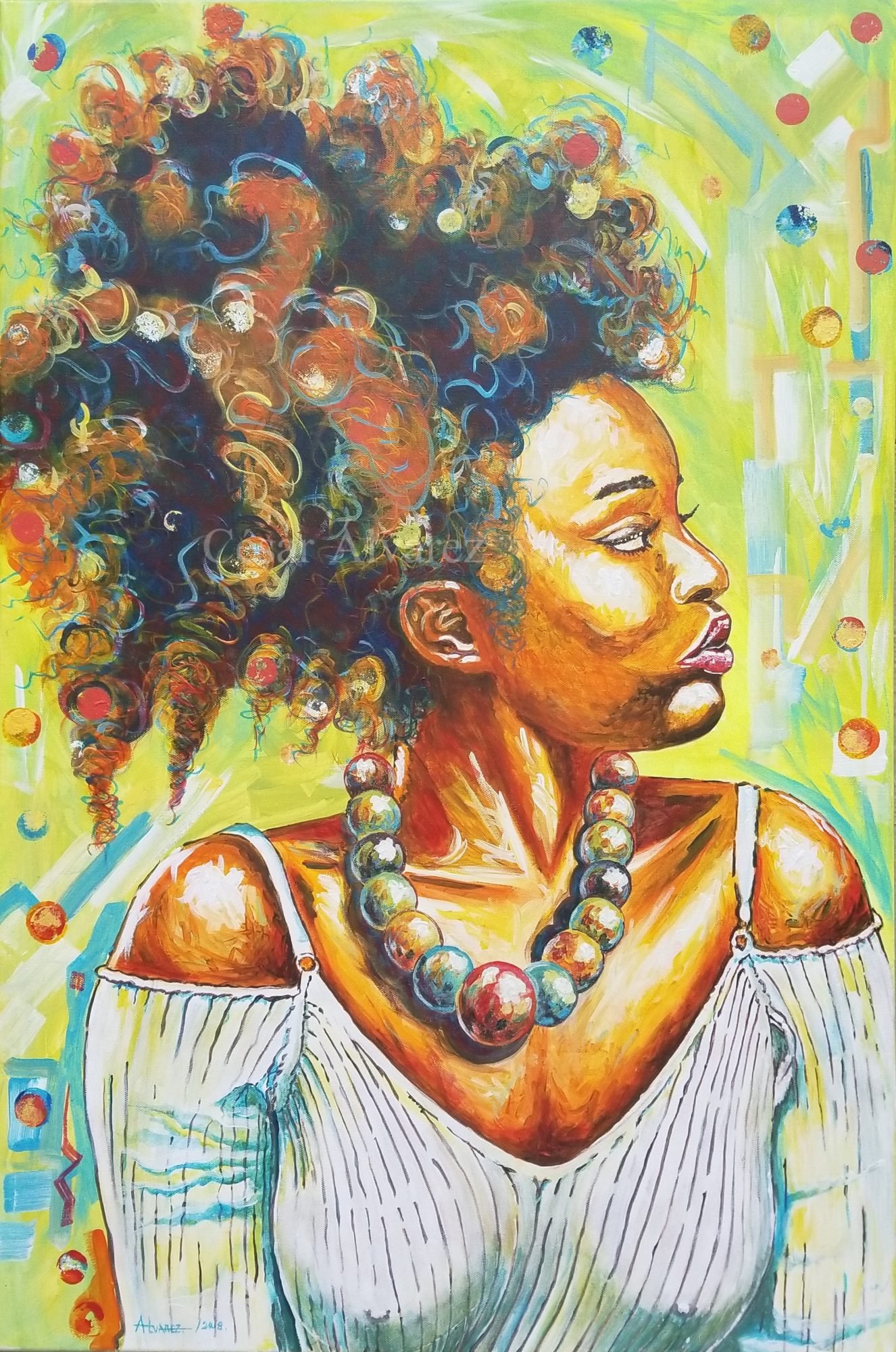 Bailarinas y Caribe hacen parte de sus más recientes series. En esta última, Álvarez retrata la esencia muy femenina de las mujeres del trópico con sus pieles morenas y sus ensortijados cabellos.