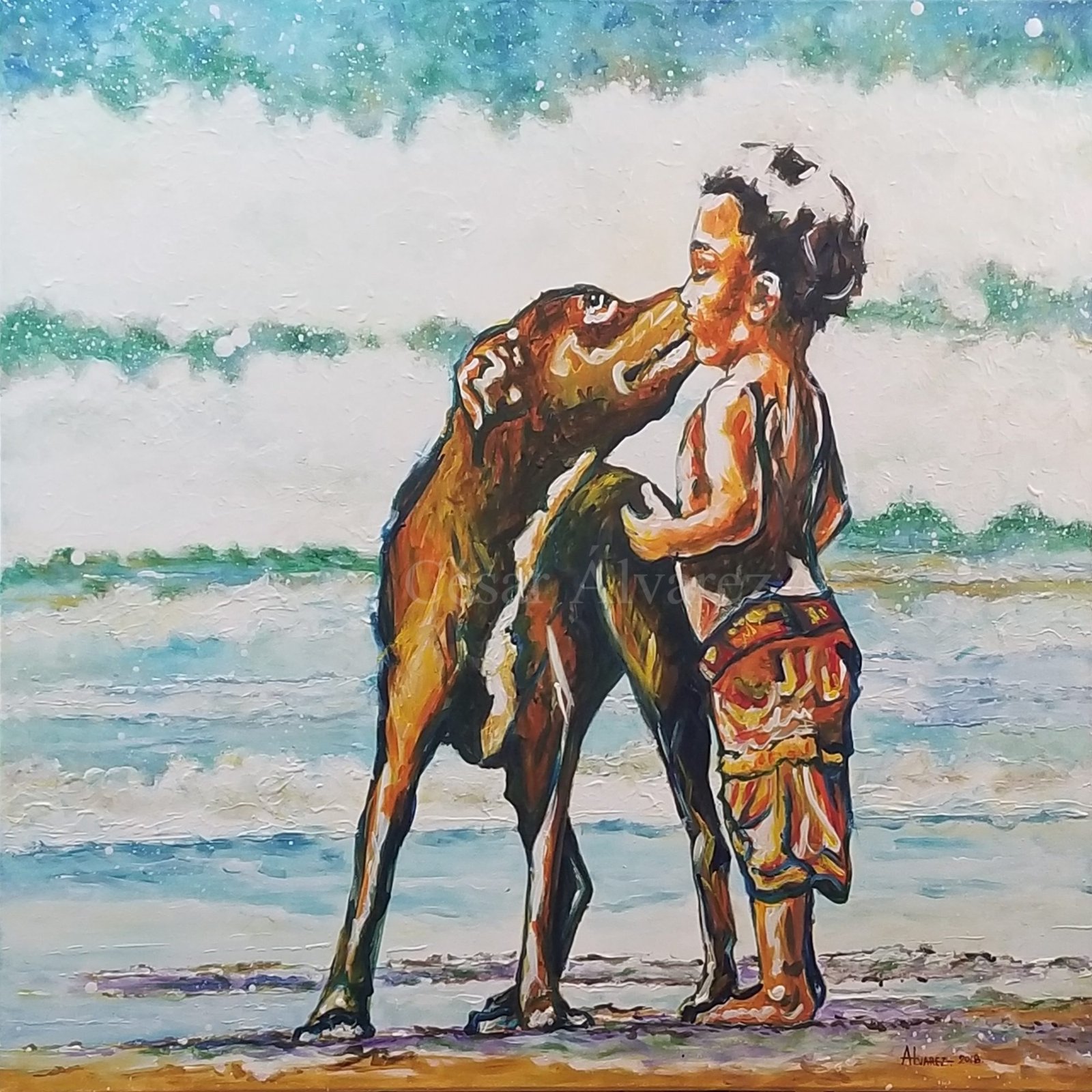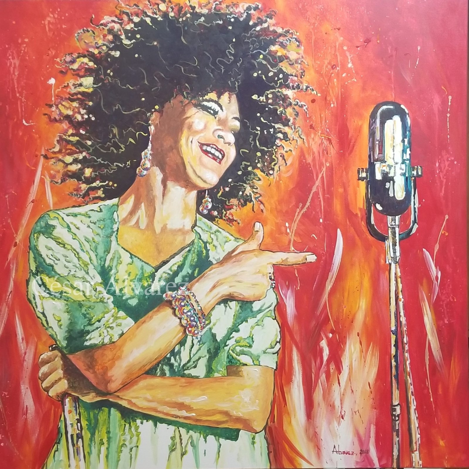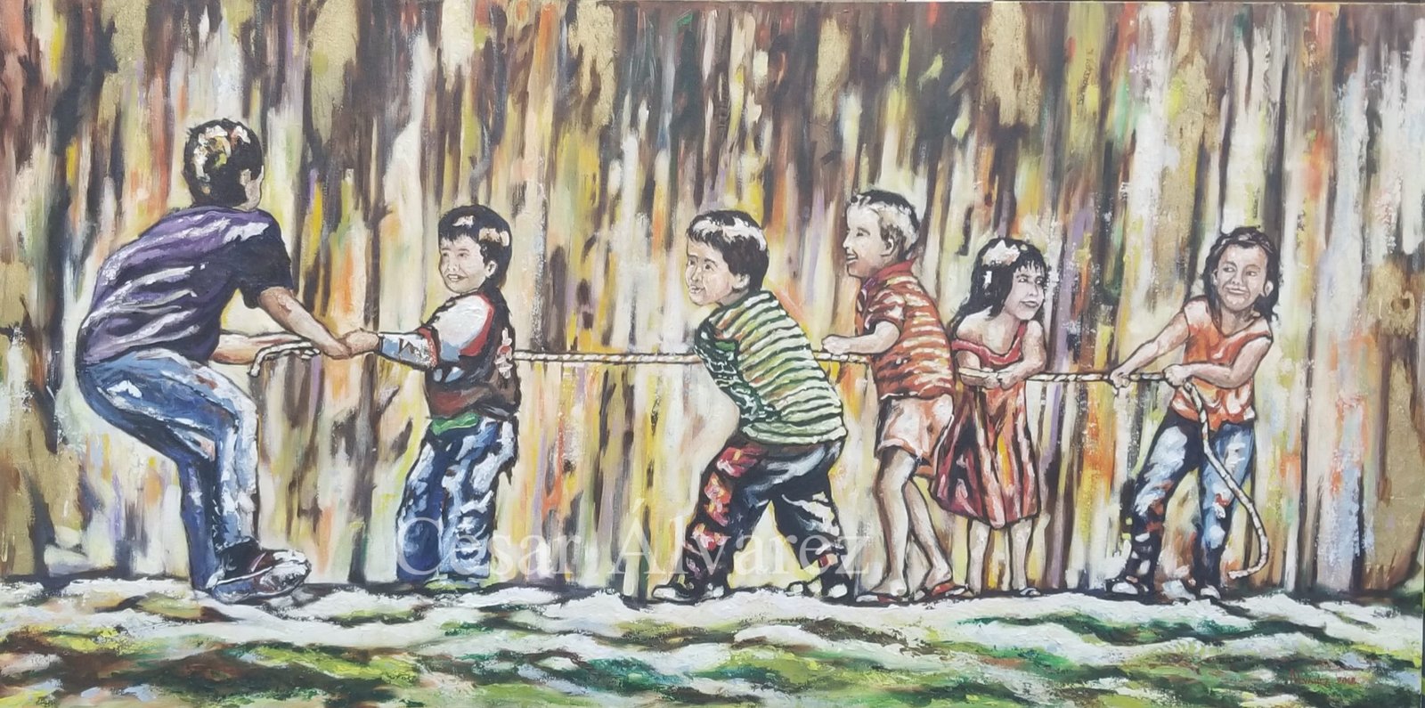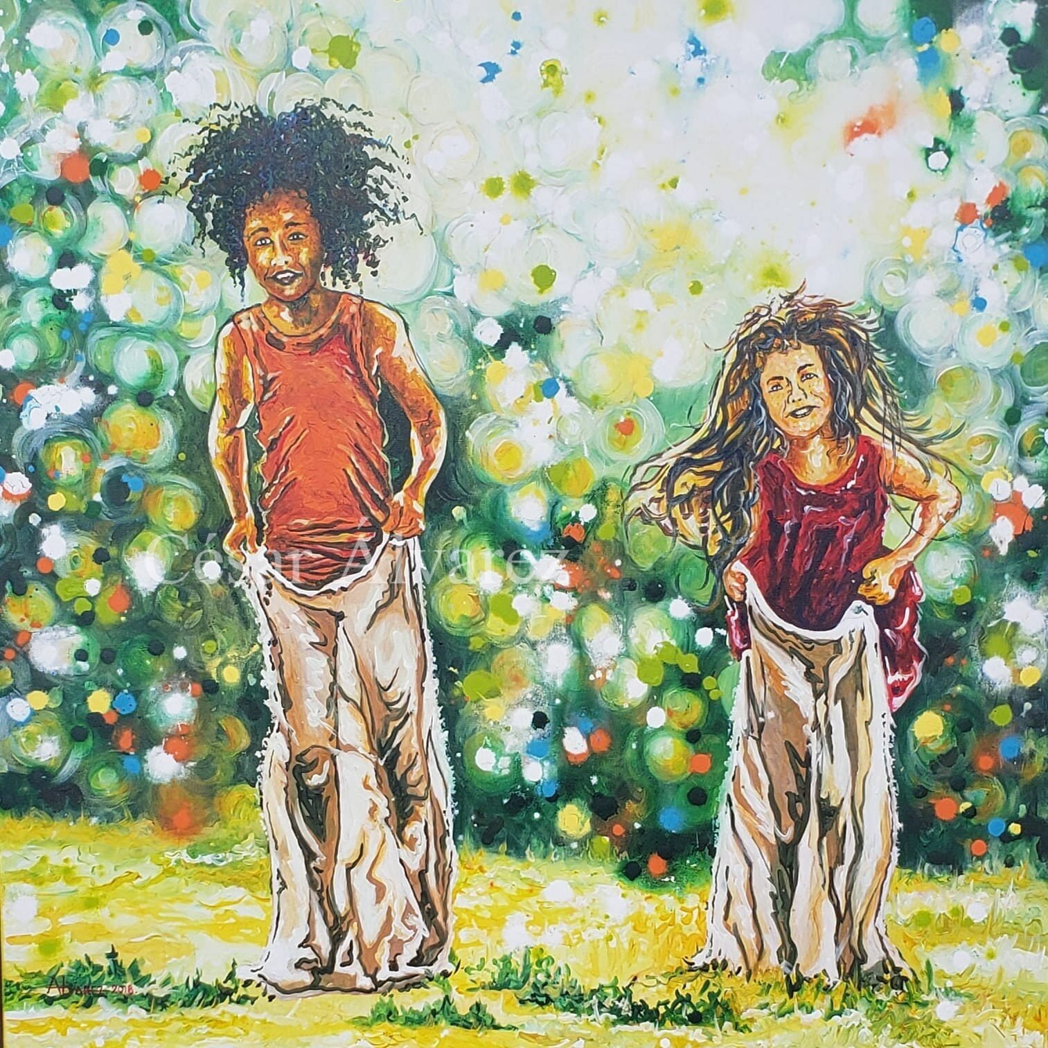 Las pinturas de César representan muchos tipos de temas, desde retratos íntimos hasta paisajes urbanos. La fuerza de unión detrás de ellos es su uso distintivo de color. “Mis pinturas se identifican por mi paleta de colores”, dice, y su paleta se basa predominantemente en tonos cálidos: rojos, naranjas y amarillos que dan a sus pinturas una presencia vibrante e interesante que, como es su objetivo, puede gustarle a grandes y a chicos, sin importar edad, raza ni cultura.