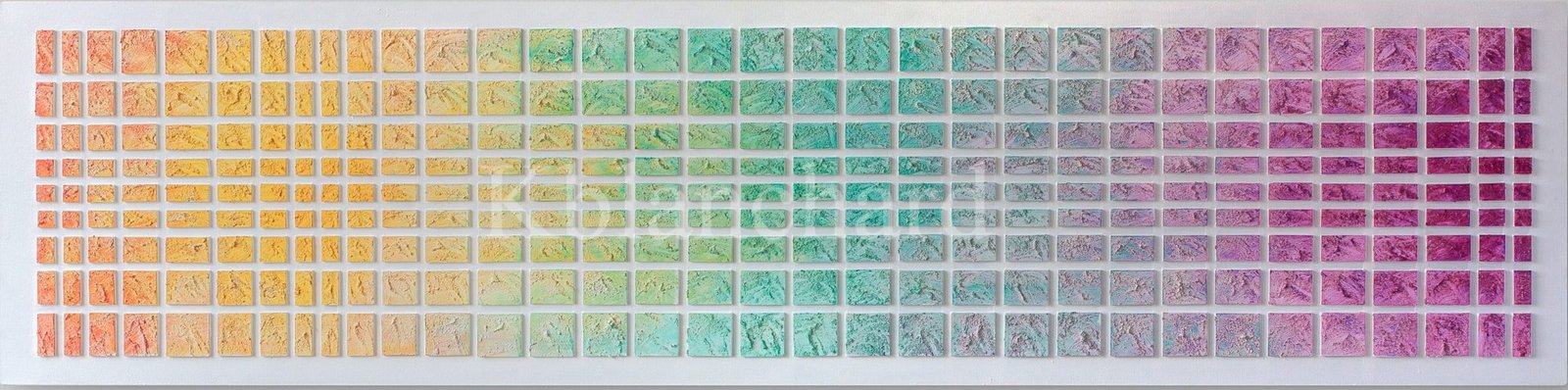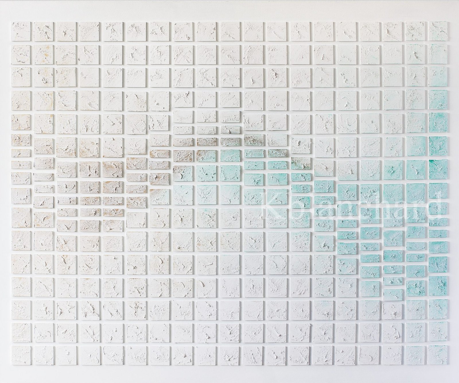 Las obras vienen inspiradas por la vista del planeta tierra de forma cenital, descubriendo su topografía natural, su composición urbana y el imaginario social, representado por el color. Allí utiliza una técnica de píxeles que trabaja en medios mixtos para extraer y reconfigurar imágenes abstractas y conceptuales. Los números y los códigos se incrustan en las imágenes, lo que les da un aire decididamente modernista que refleja las sensibilidades estructuralistas de nuestro mundo contemporáneo.